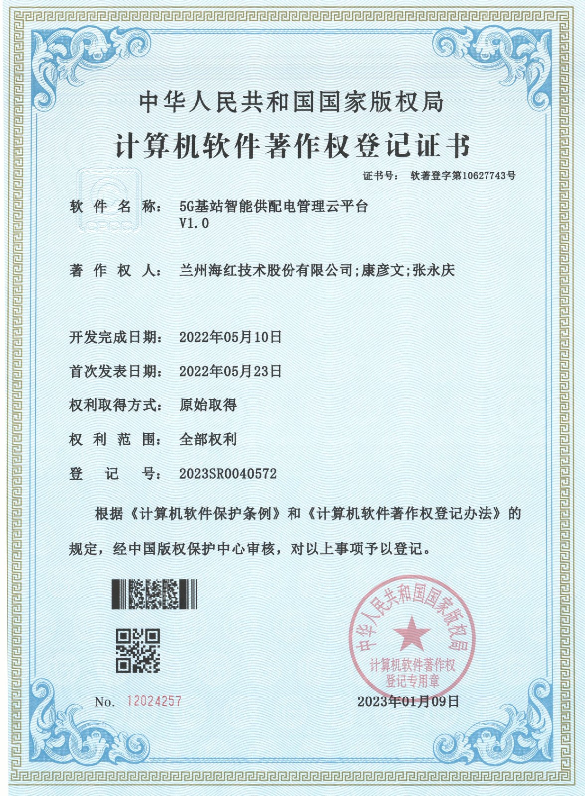 計算機軟件著作權(quán)登記證書系列