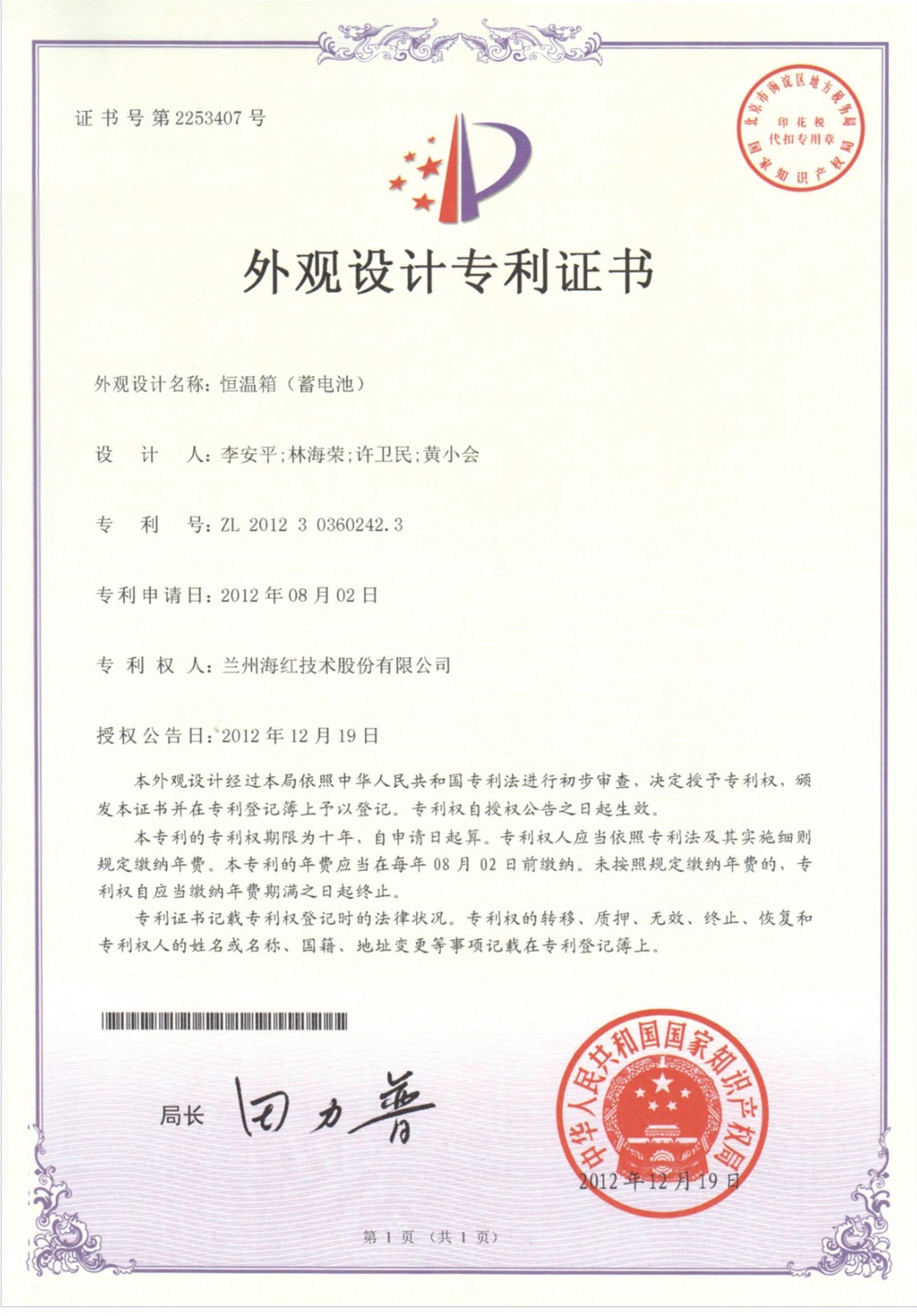 外觀設(shè)計專利證書系列