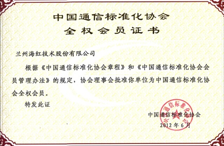 中國通信標(biāo)準(zhǔn)化協(xié)會 全權(quán)會員證書