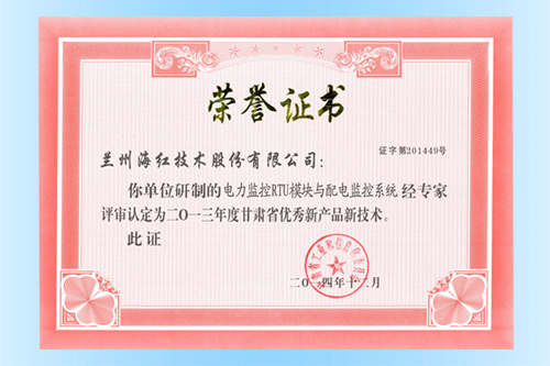 我公司“電力監(jiān)控RTU模塊與配電監(jiān)控系統(tǒng)”被認定為甘肅省優(yōu)秀新產(chǎn)品新技術(shù)