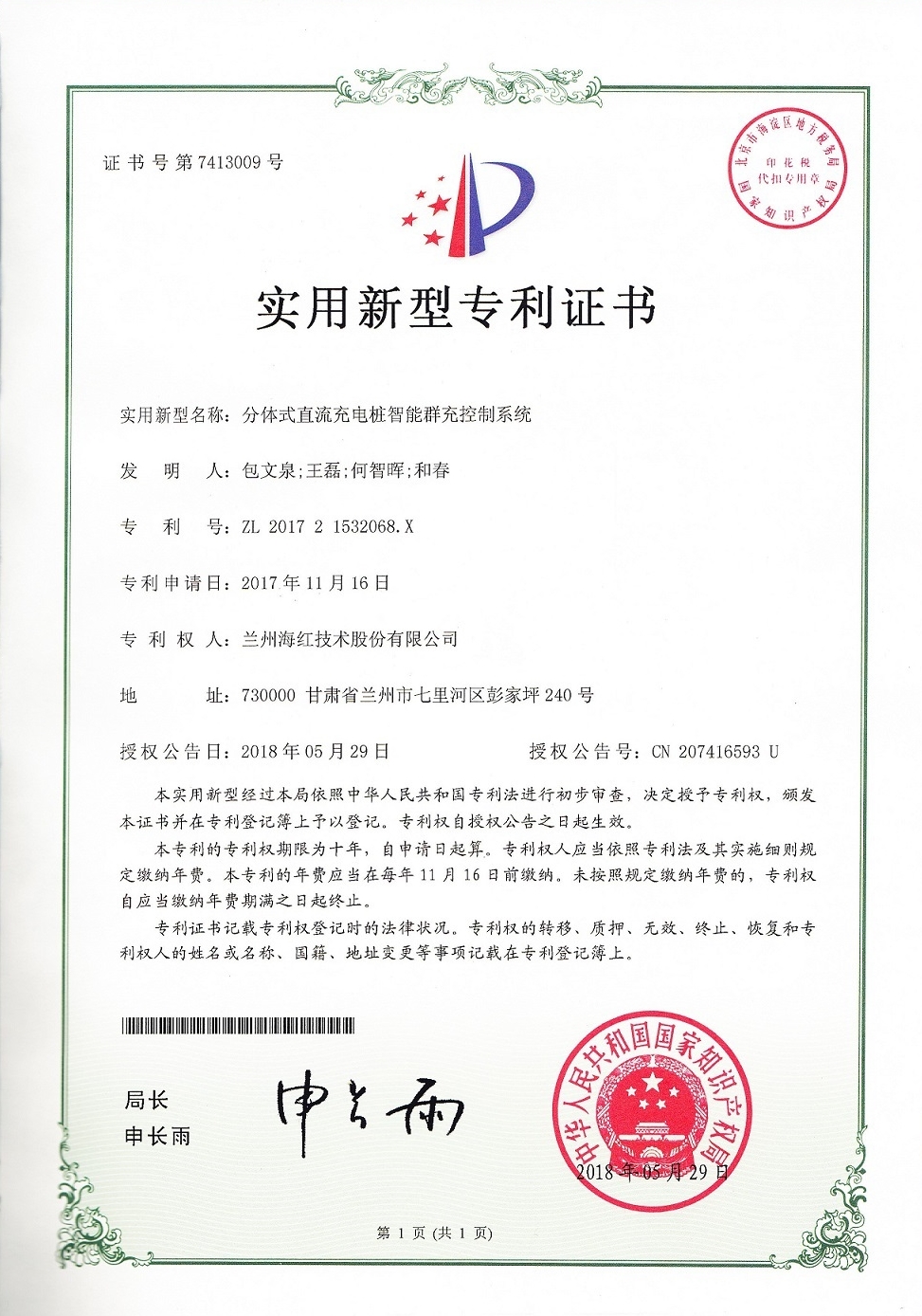 我公司又取得四項實用新型專利,至此我公司申請受理的專利數(shù)累積84項(其中發(fā)明專利17項,實用新型專利56項,外觀設(shè)計專利3項,軟件著作權(quán)8項),已獲得授權(quán)59項(其中發(fā)明專利8項,...