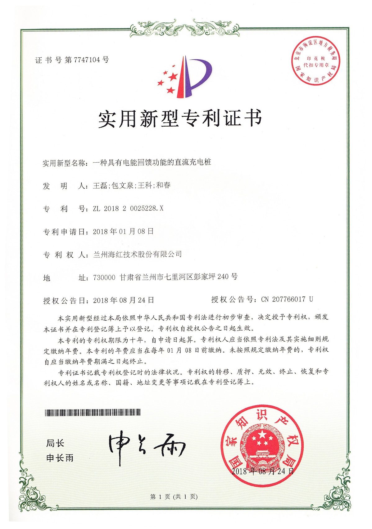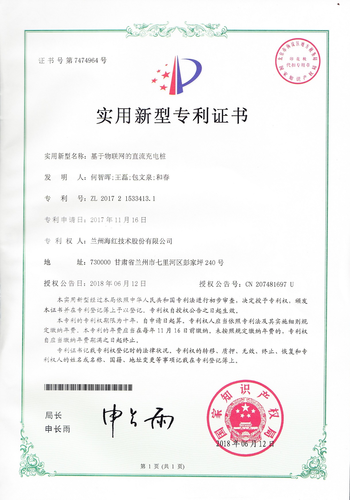 我公司又取得三項實用新型專利,至此我公司申請受理的專利數(shù)累積84項(其中發(fā)明專利17項,實用新型專利56項,外觀設(shè)計專利3項,軟件著作權(quán)8項),已獲得授權(quán)64項(其中發(fā)明專利8項,...
