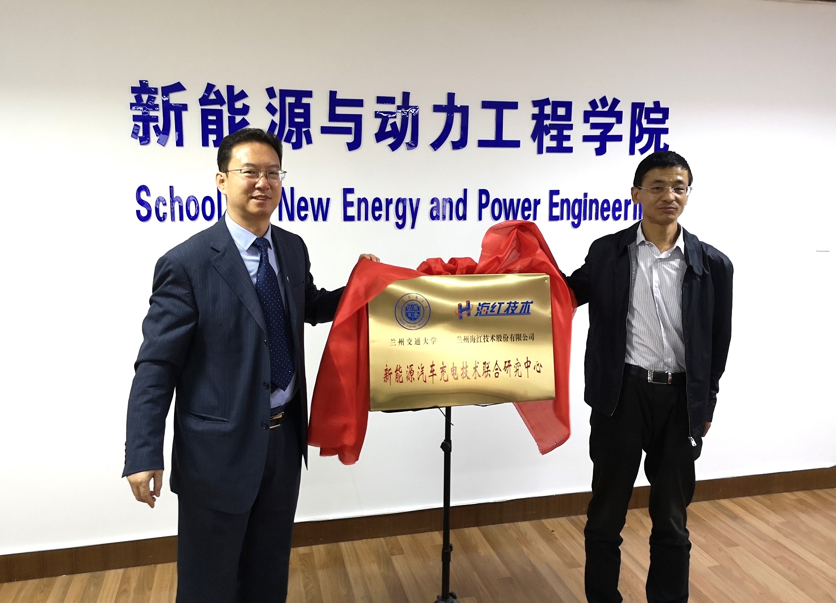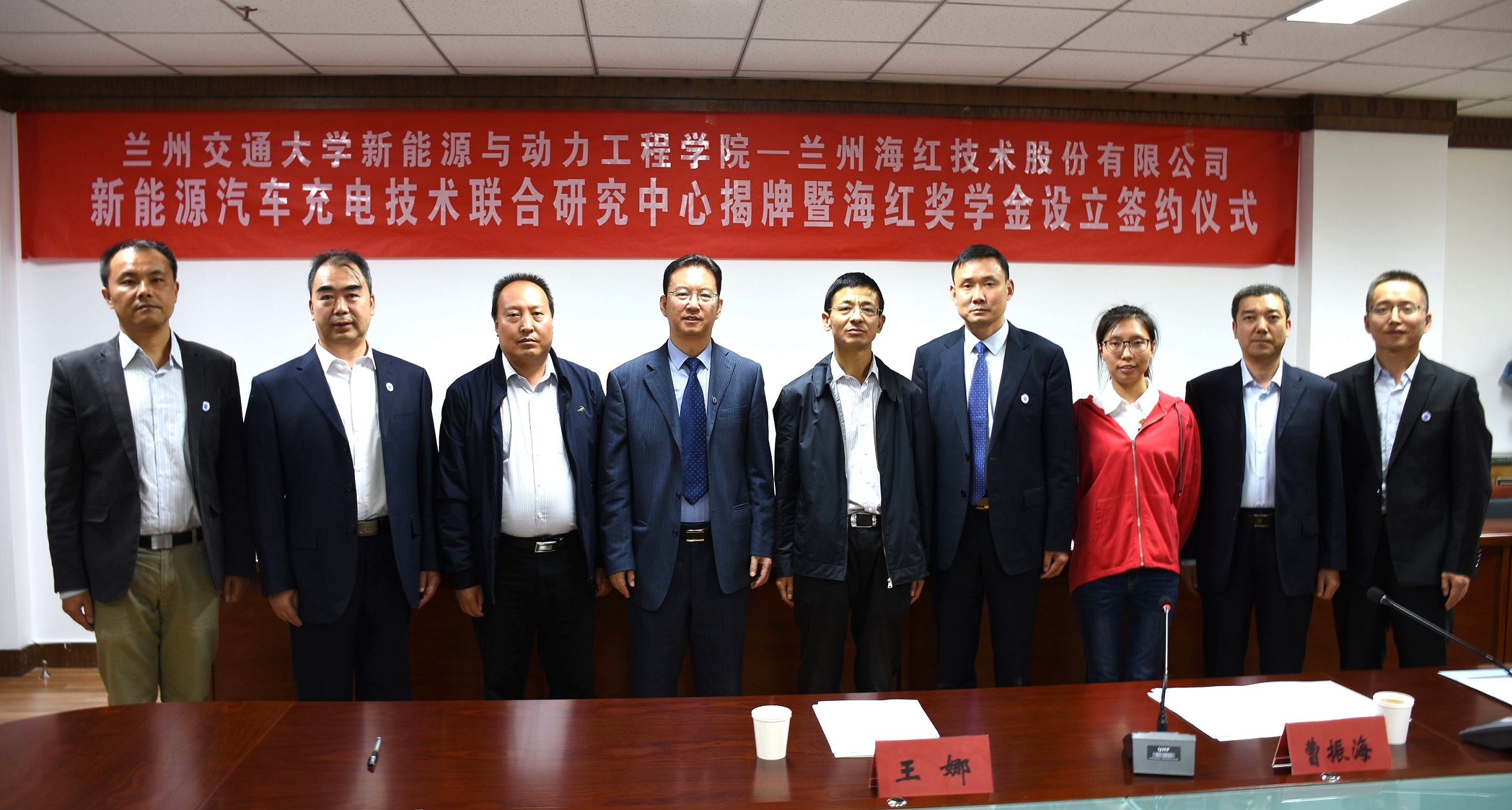 9月14日下午,我司與蘭州交通大學(xué)新能源與動(dòng)力工程學(xué)院共建“新能源汽車充電技術(shù)聯(lián)合研究中心”揭牌暨“海紅獎(jiǎng)學(xué)金”設(shè)立簽約儀式在蘭州交通大學(xué)新能源與動(dòng)力工程學(xué)院舉行。新能源與動(dòng)力工程學(xué)院書記湯旻安教授、院長董海鷹教授、副院長姚翔飛、羅小勇,我司董事長/總經(jīng)理曹振海、董事/副總經(jīng)理田愛軍等人出席了揭牌及簽約儀式。