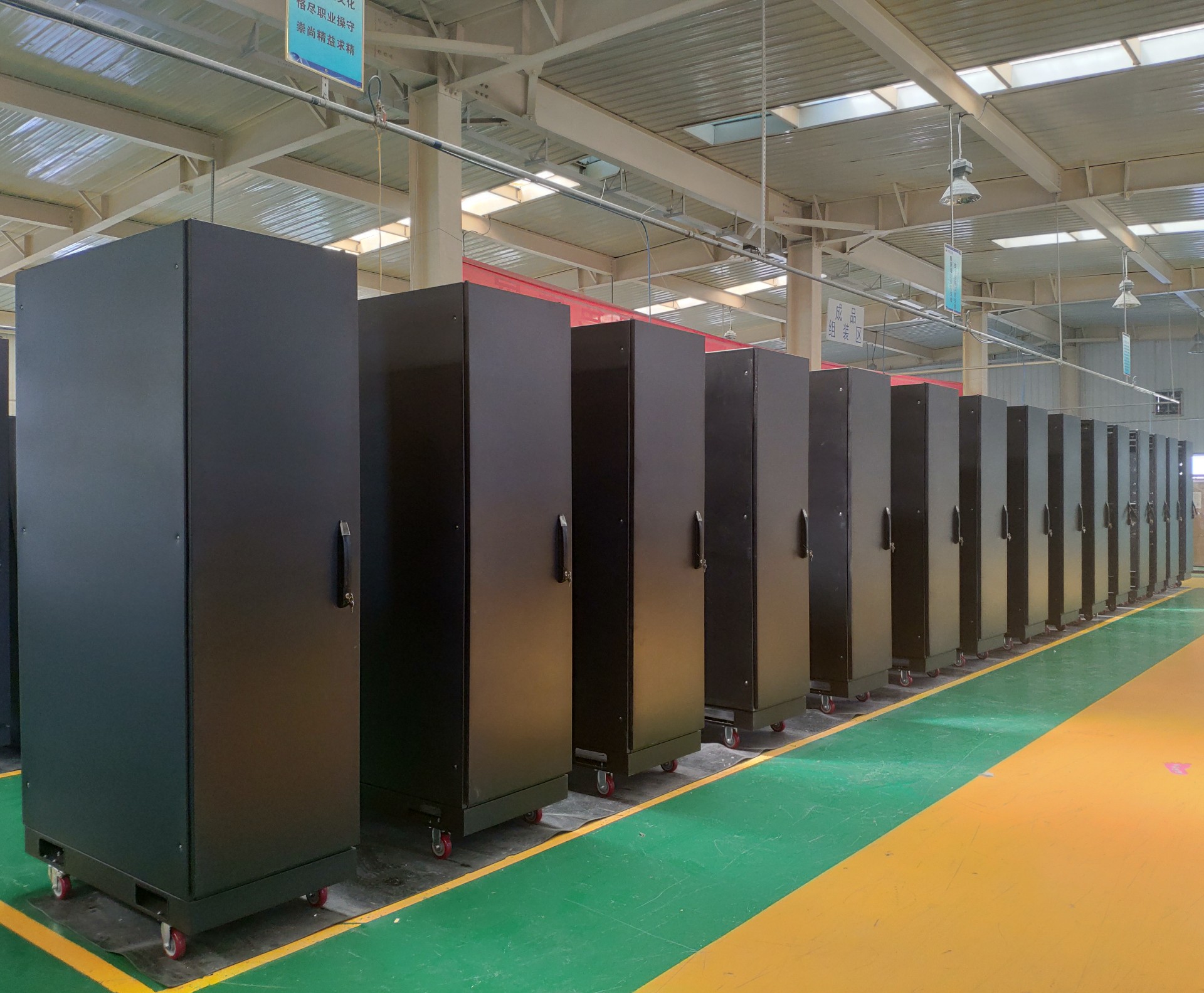 ?機(jī)柜主體框架及承重部件采用2.0mm優(yōu)質(zhì)冷軋鋼板,門(mén)板采用1.5mm優(yōu)質(zhì)冷軋鋼板,側(cè)板及其余部件材料為不低于1.2mm優(yōu)質(zhì)冷軋鋼板;