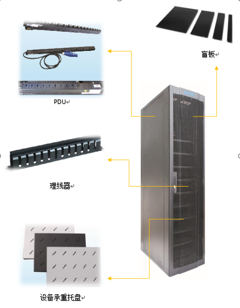 數(shù)據(jù)設(shè)備用網(wǎng)絡(luò)機(jī)柜按功能劃分主要包括:機(jī)柜體、散熱部件、電源部件、布線管理及其他配件。