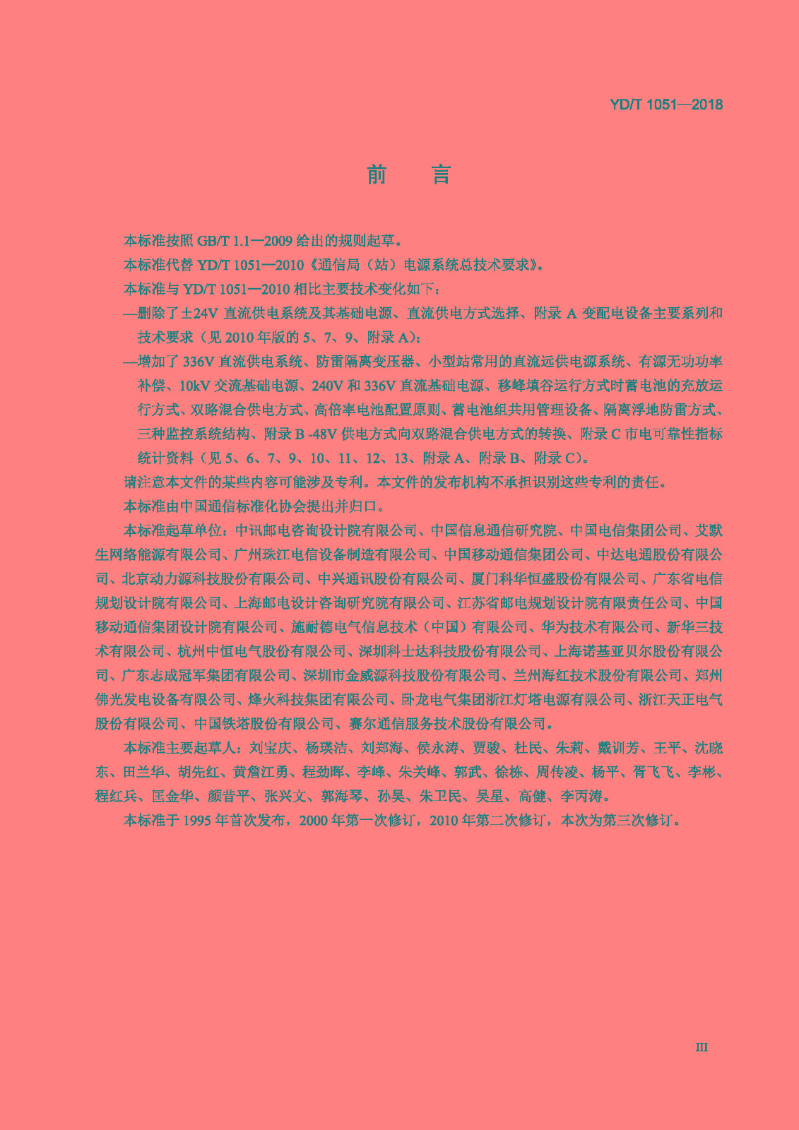 我司參與起草的《通信局(站)電源系統(tǒng)總技術要求》(YD/T 1051-2018)行業(yè)標準經(jīng)中華人民共和國工業(yè)和信息化部批準發(fā)布,已于2019年04月01日實施。我司技術中心研發(fā)部工程師張興文參與了該標準的起草。該標準是繼《通信電源和機房環(huán)境節(jié)能技術指南 第5部分:氣流組織》、《網(wǎng)絡機柜用分布式電源系統(tǒng)》、《通信電源和機房環(huán)境節(jié)能技術指南 第2部分:應用條件》、《通信用240V直流供電系統(tǒng)使用技術要求》四項標準之后,由我司參與起草正式出版的第5項行業(yè)標準。