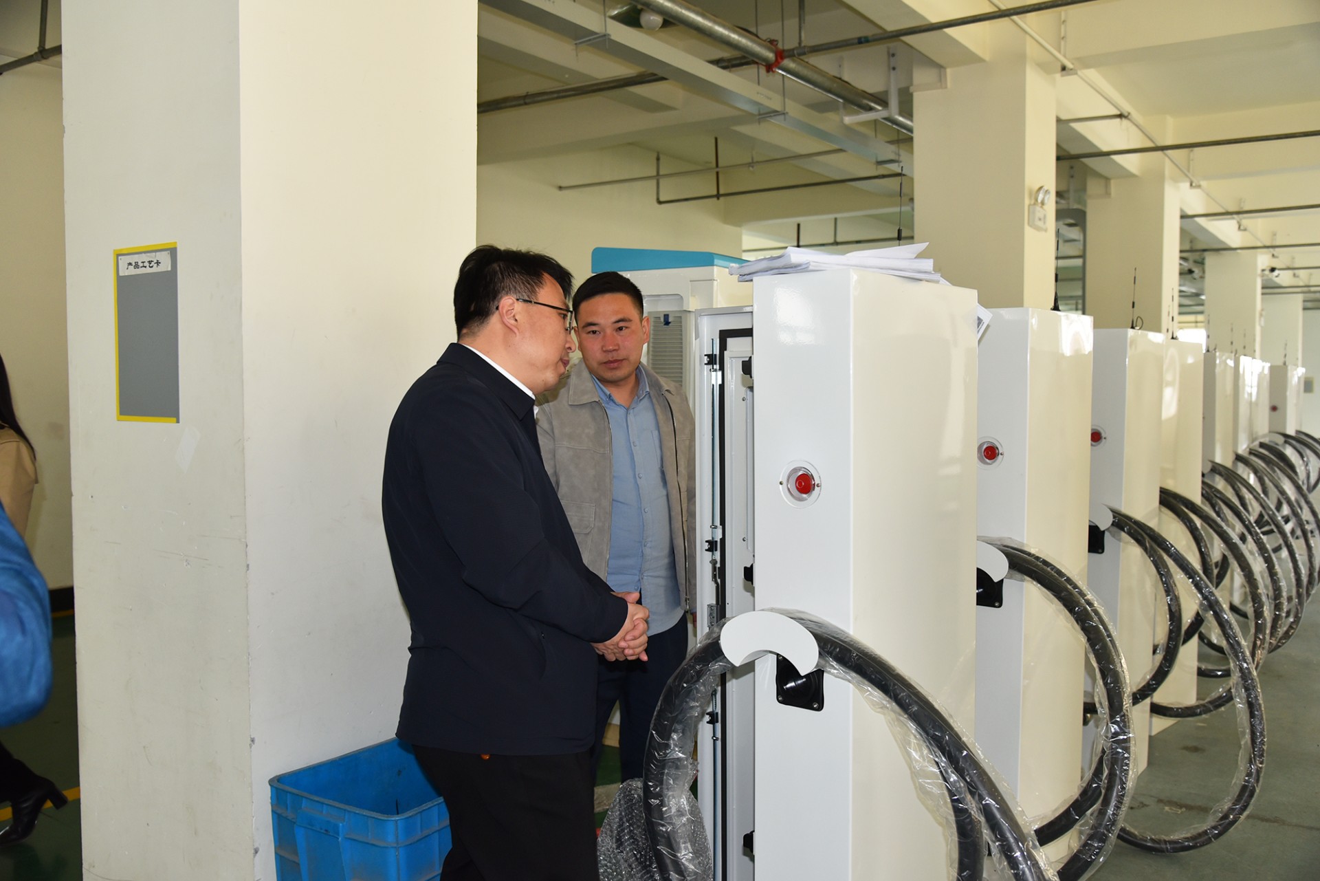 4月23日下午,蘭州市工信局局長(zhǎng)王正祥一行蒞臨我司調(diào)研,詳細(xì)了解了我司生產(chǎn)經(jīng)營(yíng)情況以及充電站運(yùn)營(yíng)情況,先后參觀了我司產(chǎn)品展廳、生產(chǎn)車間等地。