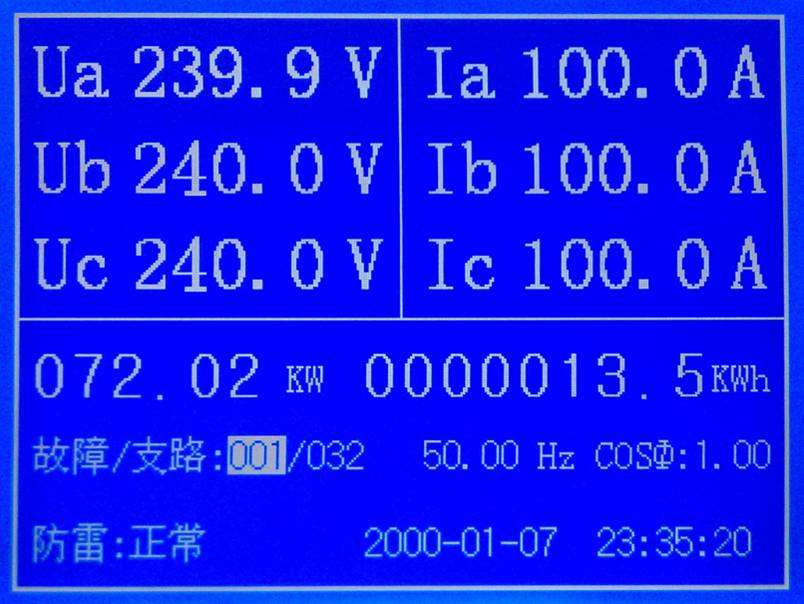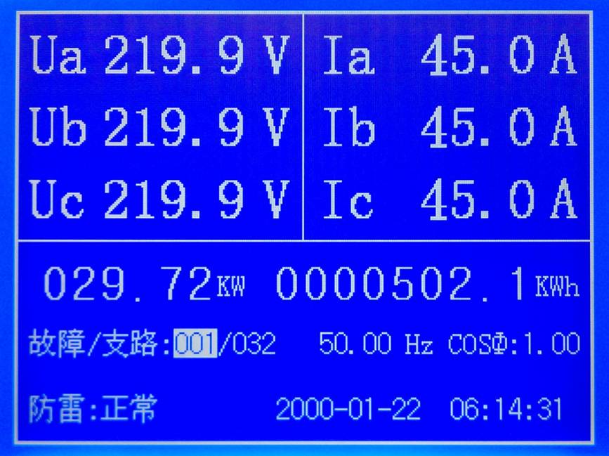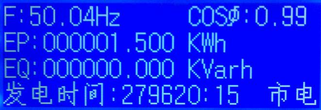 2、頻率、功率因數(shù)、電能、發(fā)電時(shí)間、功能等顯示