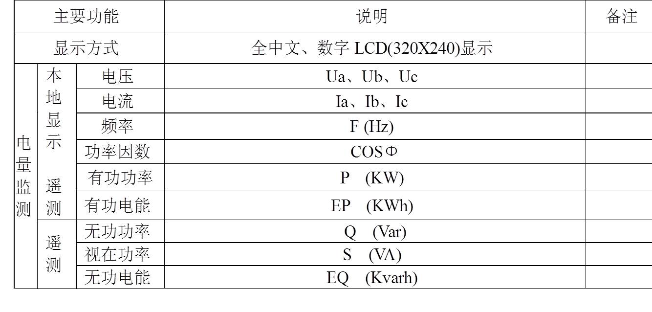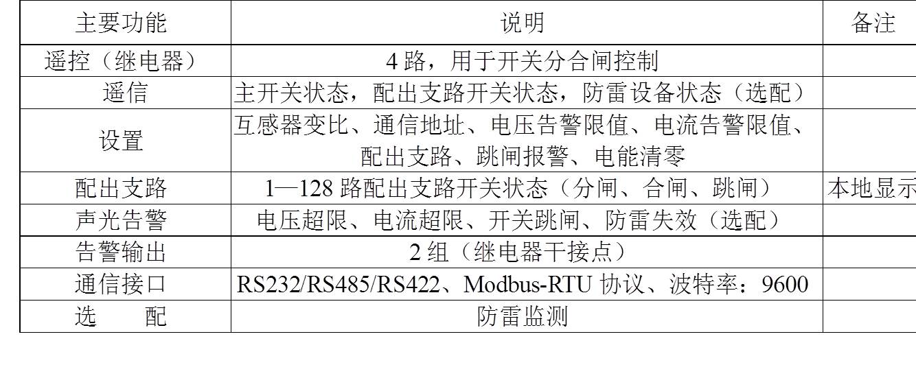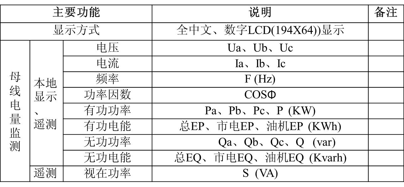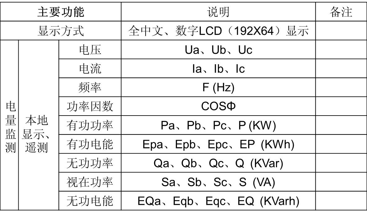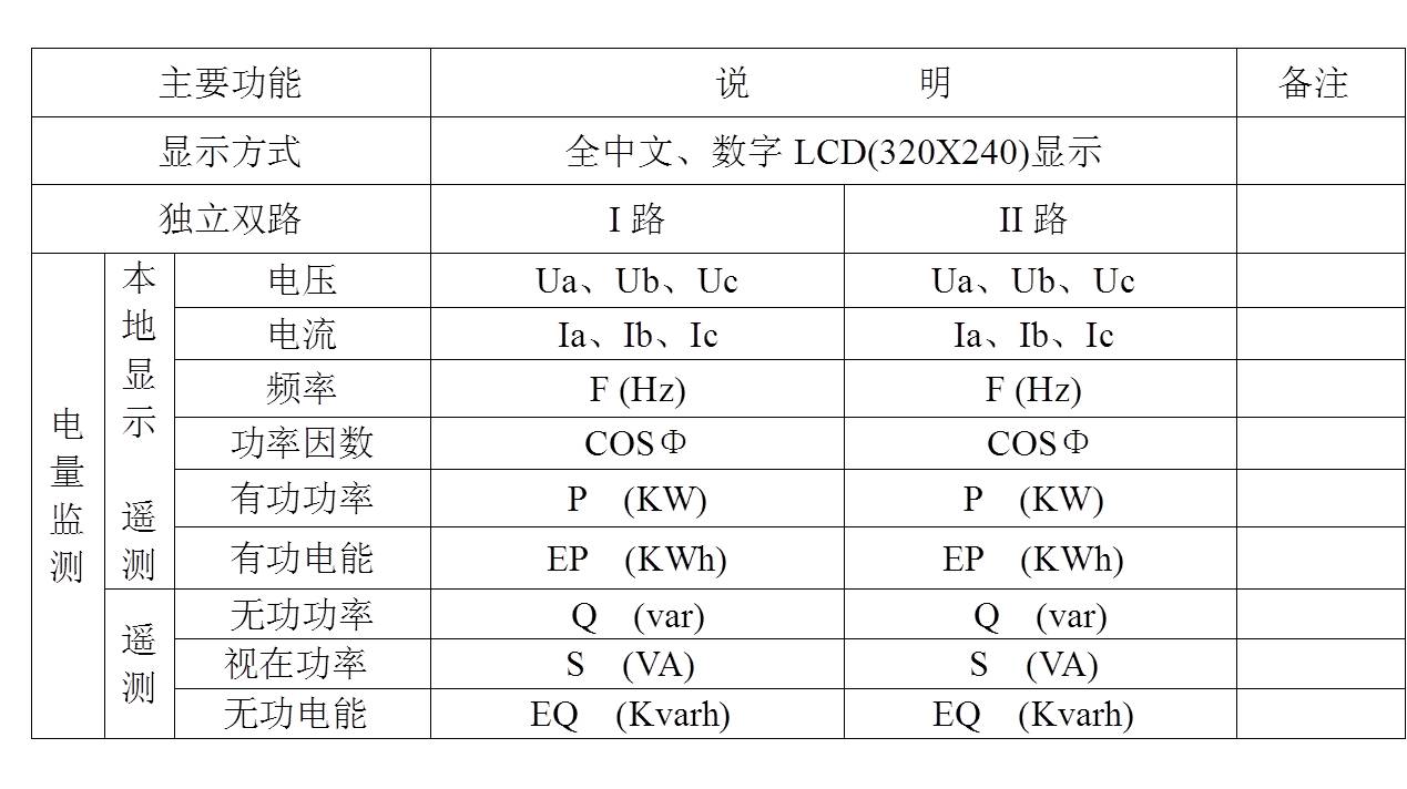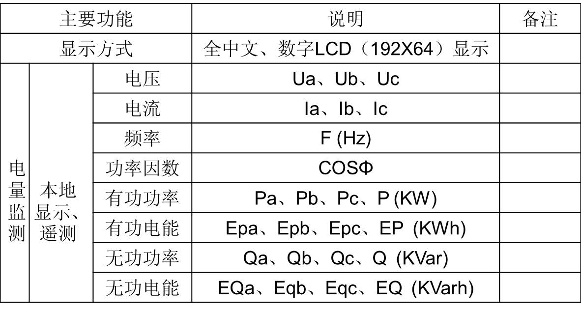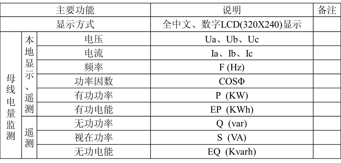 3、具有母線電壓、功率因數(shù)、頻率、總電流、總有功功率、總有功電能,多個(gè)重要配出回路的電流、功率、電能,以及各配出支路開關(guān)狀態(tài)的監(jiān)測(cè)和顯示功能。