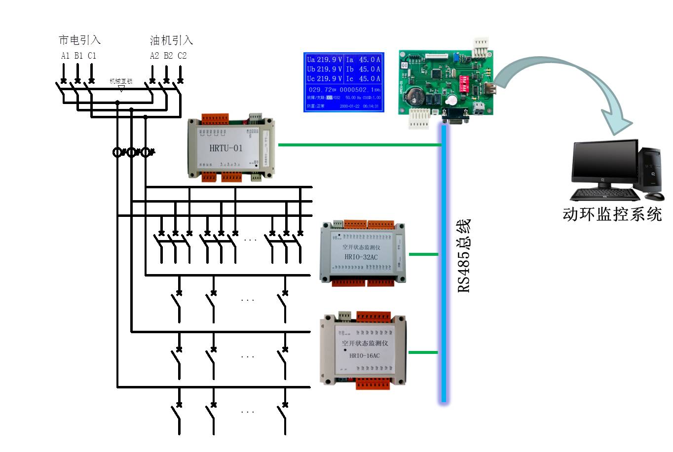 3、雙路之間相互獨(dú)立,弱電與強(qiáng)電部分完全隔離,運(yùn)行安全、可靠。各單元之間均采用RS485通信總線結(jié)構(gòu)相連接。接線、安裝、調(diào)試非常方便。