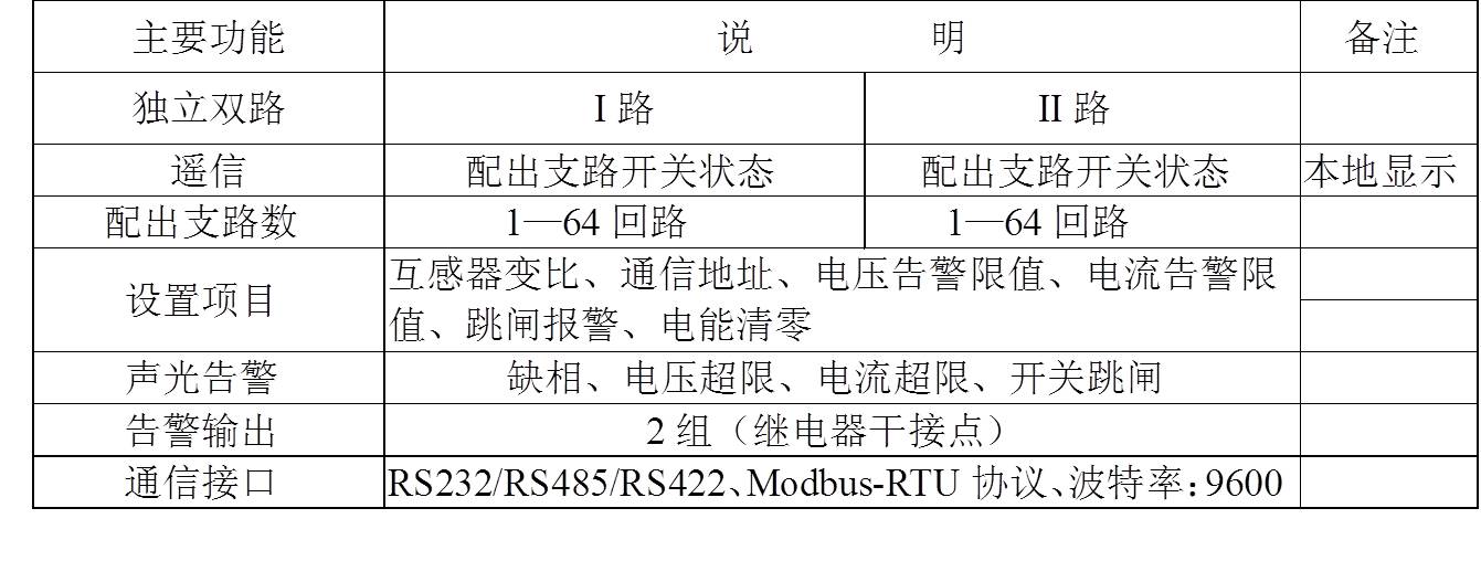 4、具有電流超限、電壓超限、缺相以及配出支路斷路器跳閘故障聲光告警功能,并提供2組故障告警繼電器輸出接口。